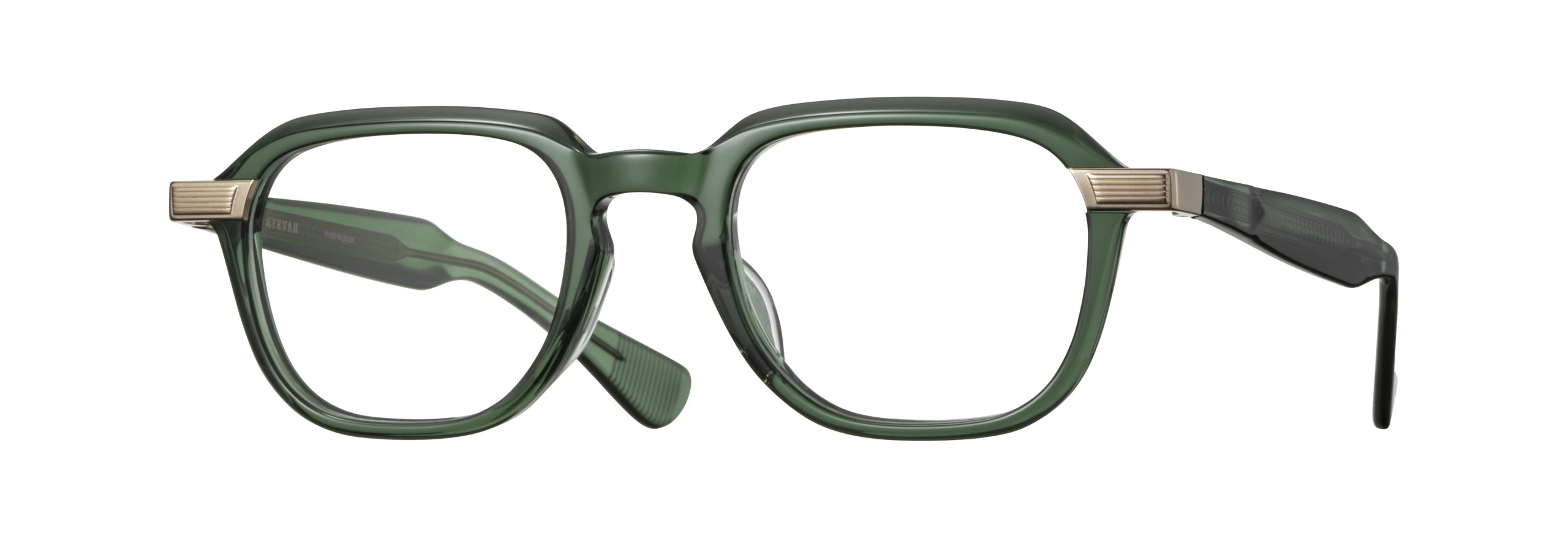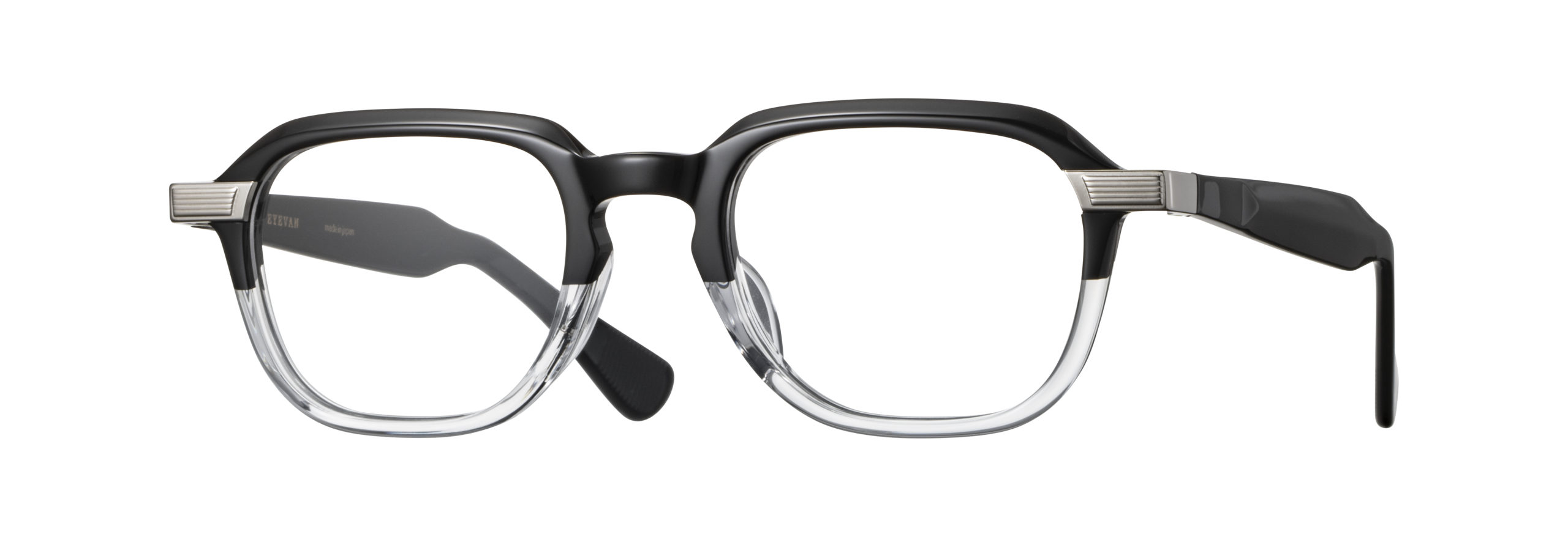 1960年代のヴィンテージのサーモントフレームに見られる、フロント裏の特殊な丁番形状がインスピレーションソースとなったモデル。その構造をインサイドアウトの発想で外に表現しフロント表面と一体化したヨロイとしてデザインした。フロントシェイプはデザインチームが2017年にファッションブランドの為にデザインしたものをベースに新たな要素を加えアップデートした。アメリカンヴィンテージの幾つかのモデルの要素をミックスしながらボーダレスなプロダクトとなったEYEVANを象徴するモデル。