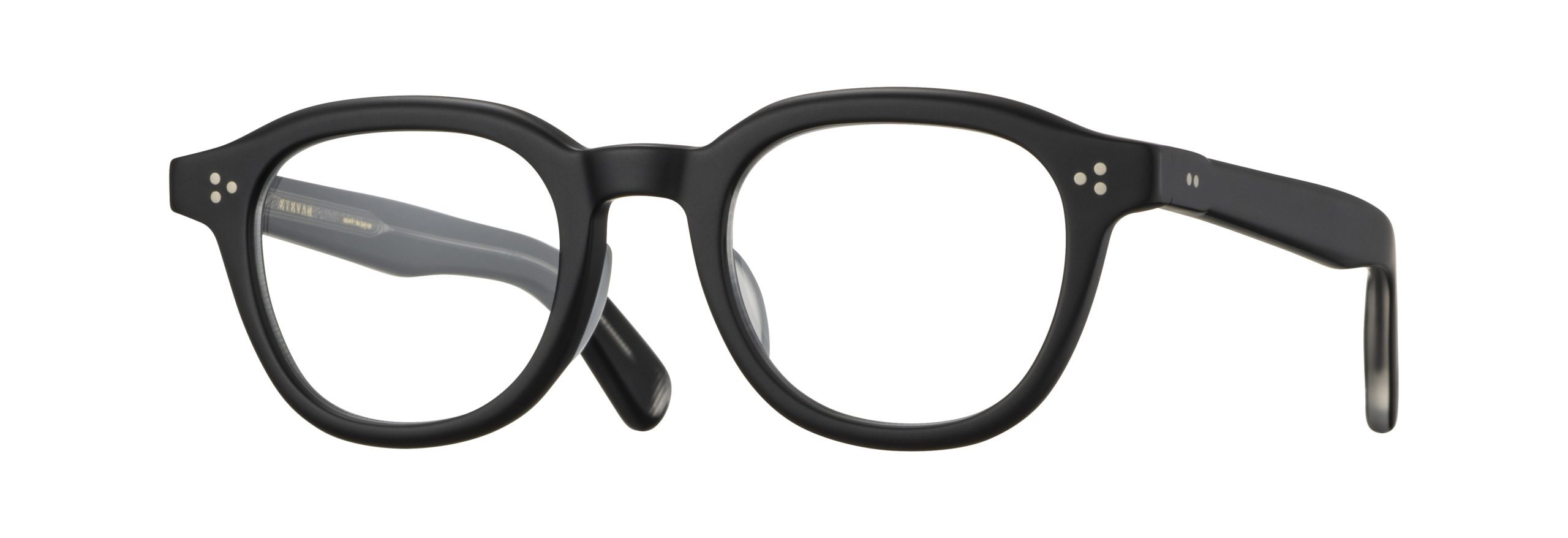 正面視やや厚みのあるウェリントンフロントに、1950年代の希少なフレンチヴィンテージに見られる上下のベベルカットが特徴的なテンプルを合わせたモデル。フロントには3PINかしめ丁番、テンプルには2PINかしめ丁番を合わせオーセンティックに仕上げた。