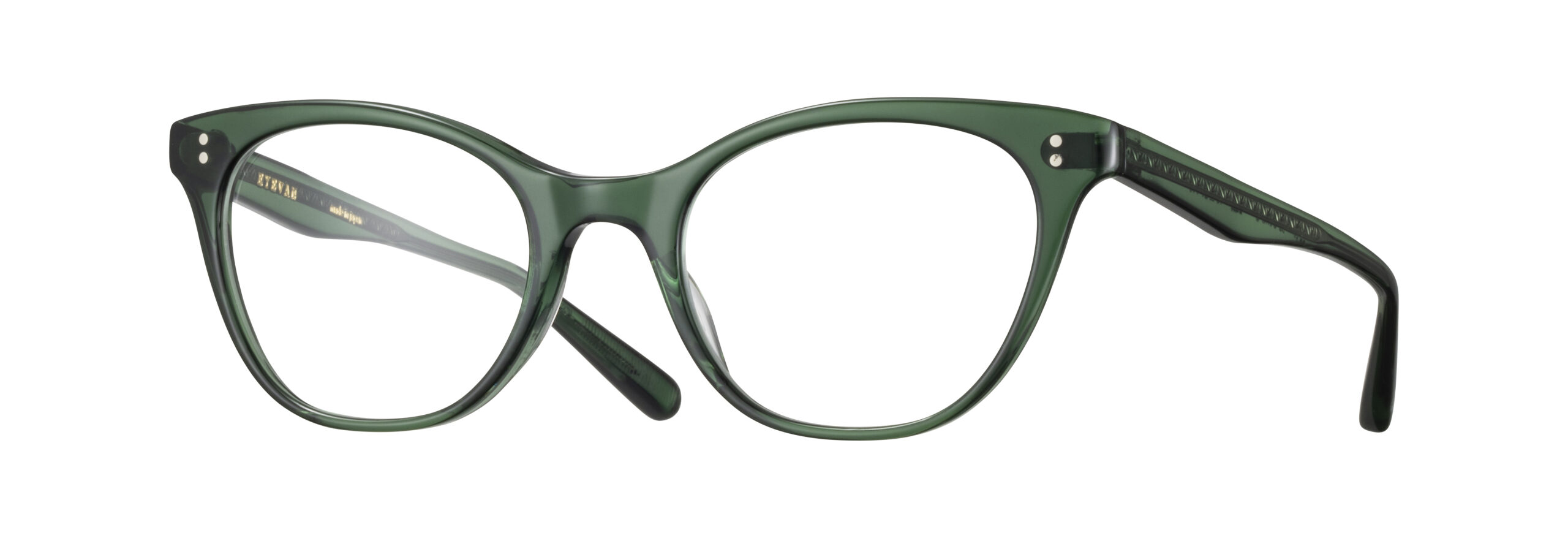 A 1960s-inspired cat-eye acetate frame reimagined in EYEVAN’s signature style. The temple core features a pattern adapted from antique trunks, engraved on both sides, subtly reflecting EYEVAN’s unique design philosophy.