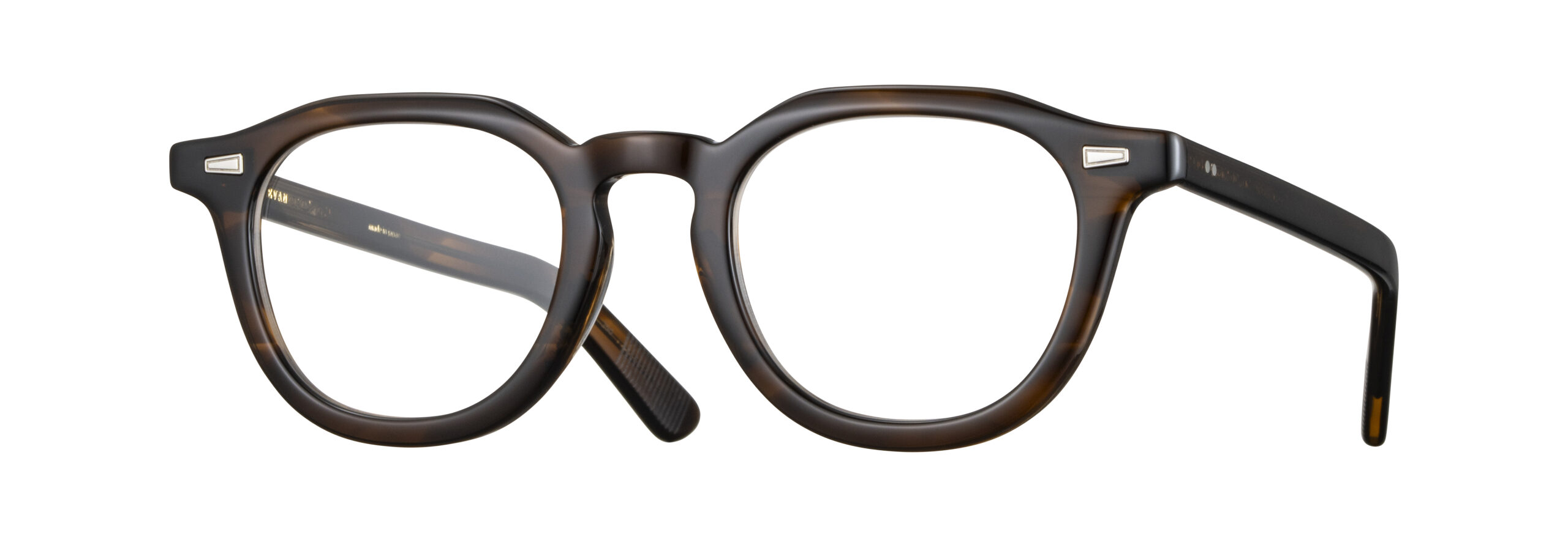 An updated model of “Albedo” first released in the 2024 Spring/Summer collection. Based on the 1950s French vintage, it combines a lens shape that is intermediate between Wayfarer and Crown Panto. The rim has been reconstructed with a slightly bolder silhouette, while the temple features an entirely new design. The endpieces have excellent molding precision and are combined with original decorative rivets, completed through a pressing process more than three times longer than usual.