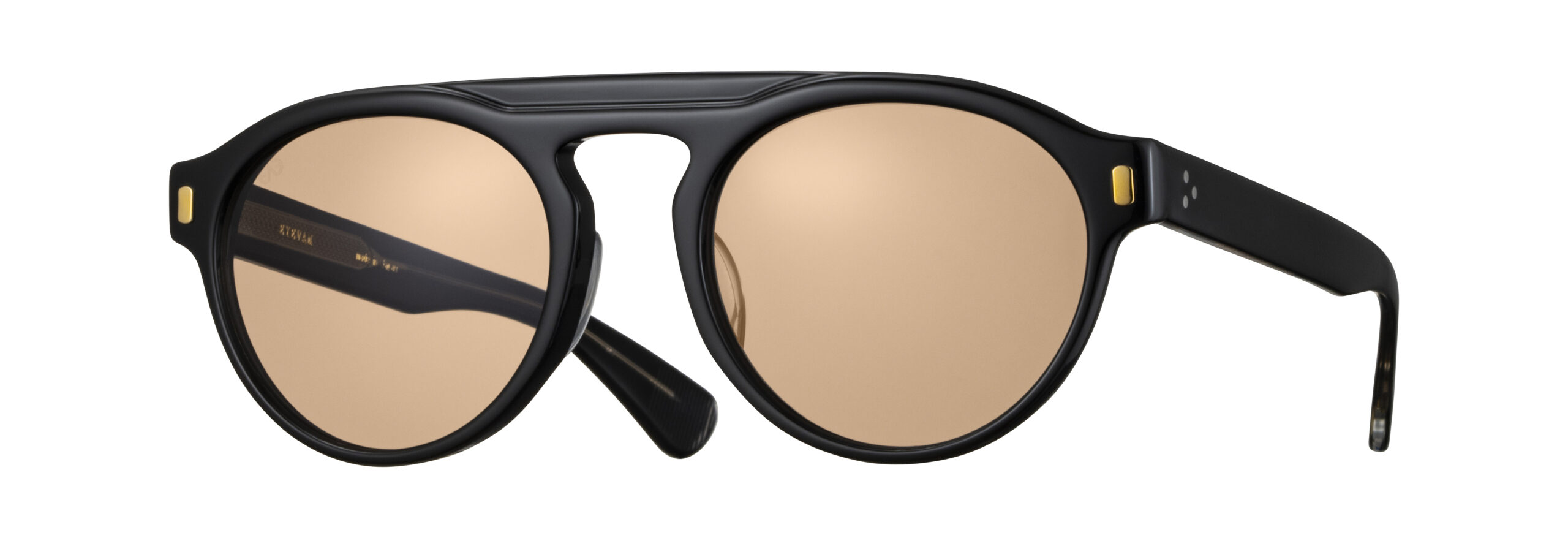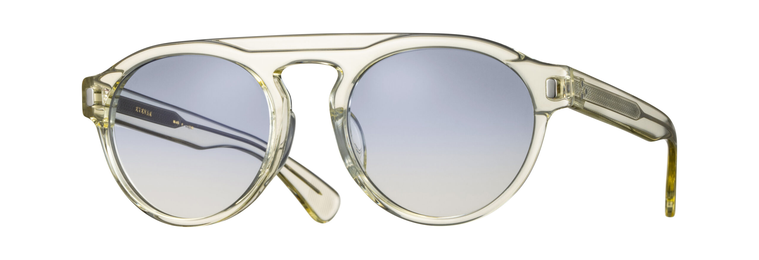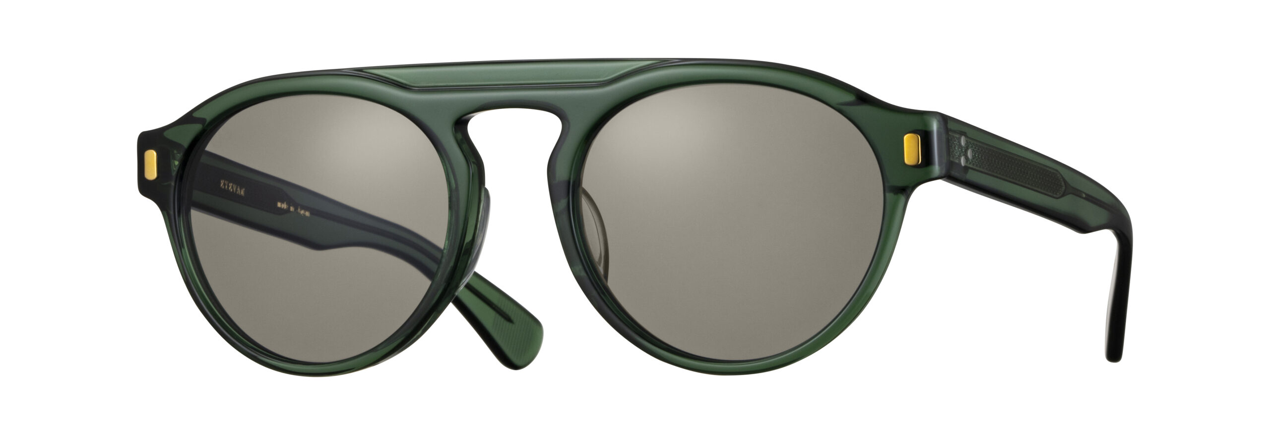 A new model introducing a refreshed shape to the top bar design carried over from the 2025 Autumn/Winter model “Zen.” While retaining the stepped-cut bridge, the lenses are selected from the design team’s past stock, featuring a horizontally long Panto shape. The bridge’s protrusion has been reduced to match the strong front curve, creating a sense of unity throughout the entire frame. This construction represents the culmination of the style lineage from “Brett” to “Zen.” Original CR39 4 – curve lenses are used for sunglass lenses.